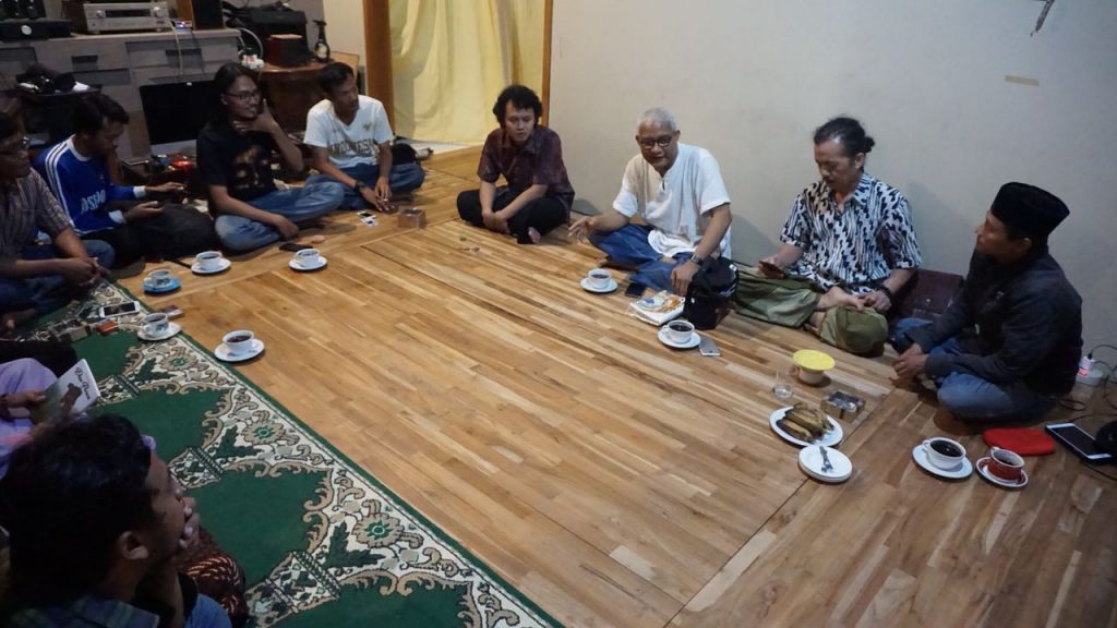 Setelah selesai membahas seputar kesederhanaan dan kebersahajaan Imam Khomaini, Wasis memimpin seluruh jamaah yang hadir di malam itu untuk menyapa Kanjeng Nabi Muhammad. Setelah semua orang yang ada di ruangan 3 X 7 meteran itu selesai menyapa kekasih Gusti Allah dan kekasih kita bersama, forum sinau bareng dimulai dengan dipimpin Mas Agus Wibowo penggiat Majelis Gugur Gunung Unggaran yang pada hari itu juga turut hadir menemani penggiat Suluk Surakartan untuk menimba ilmu dari salah satu Marja’ Maiyah tersebut. Mas Agus mengajak kepada seluruh jamaah yang hadir untuk memanfaatkan momentum muhajahah dengan Syaikh Kamba dengan menyiapkan pertanyaan-pertanyaan yang mungkin sudah disiapkan dari rumah.