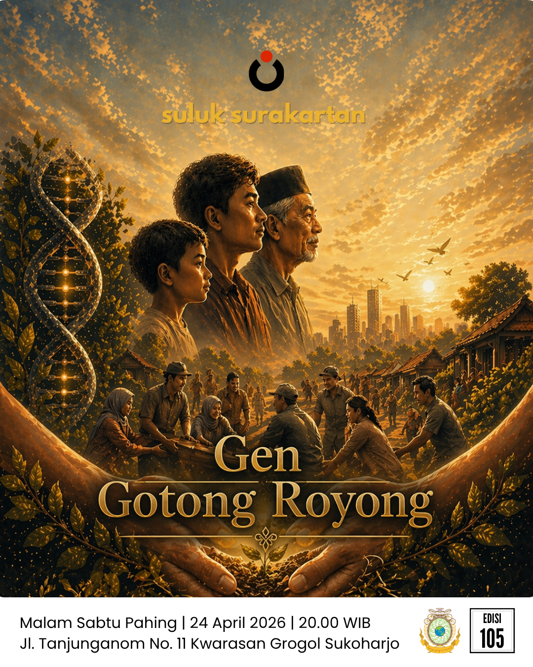 Di titik inilah kita perlu bertanya kembali, apakah gen gotong royong itu benar-benar akan hilang, atau hanya terhijab oleh cara berpikir yang tidak lagi memberi ruang bagi kebersamaan? Hari ini mungkin kita tidak kekurangan nilai, tetapi kehilangan kesadaran untuk menghidupkannya. Maka melalui forum ini, kita mencoba membuka kembali lapisan-lapisan yang menutupi kesadaran itu. (Redaksi Suluk Surakartan)
