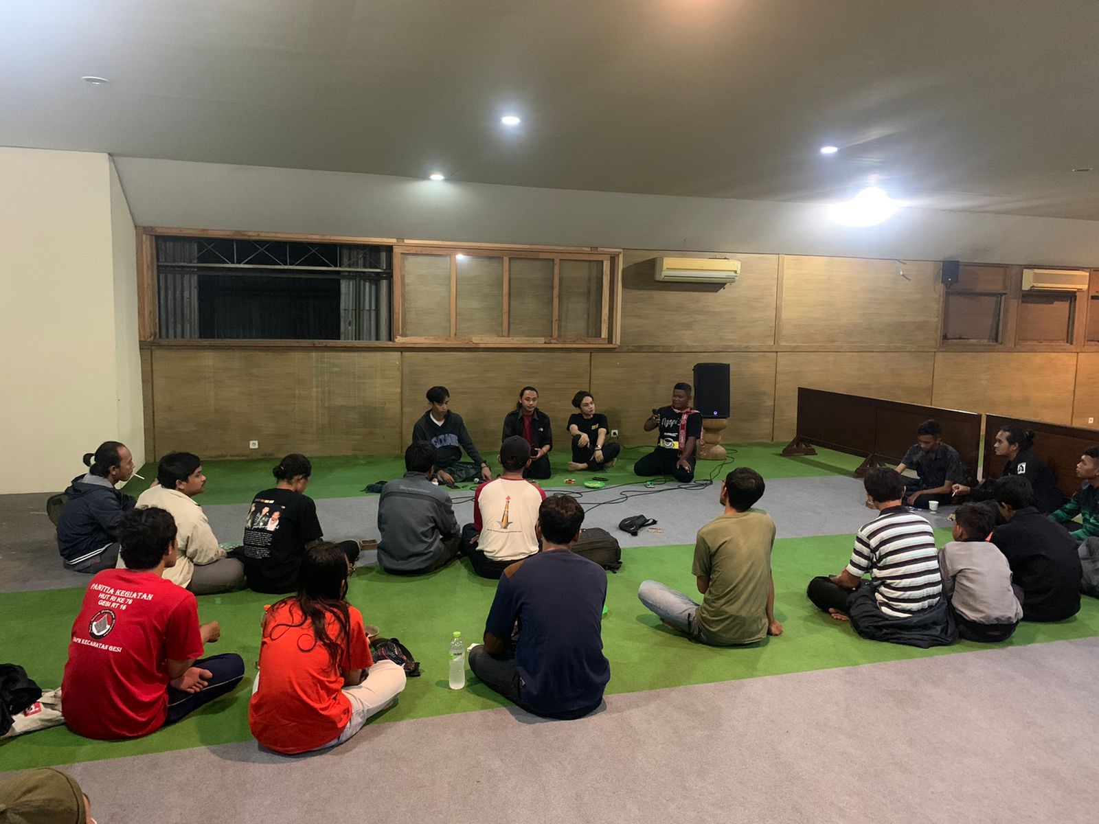 Acara dibuka oleh moderartor yaitu Mas Ahmad Abdul Khaq dan diawali dengan sholawat alfa salam yang dilantunkan bersama sembari diiringi oleh hadrah dari teman-teman penggiat.